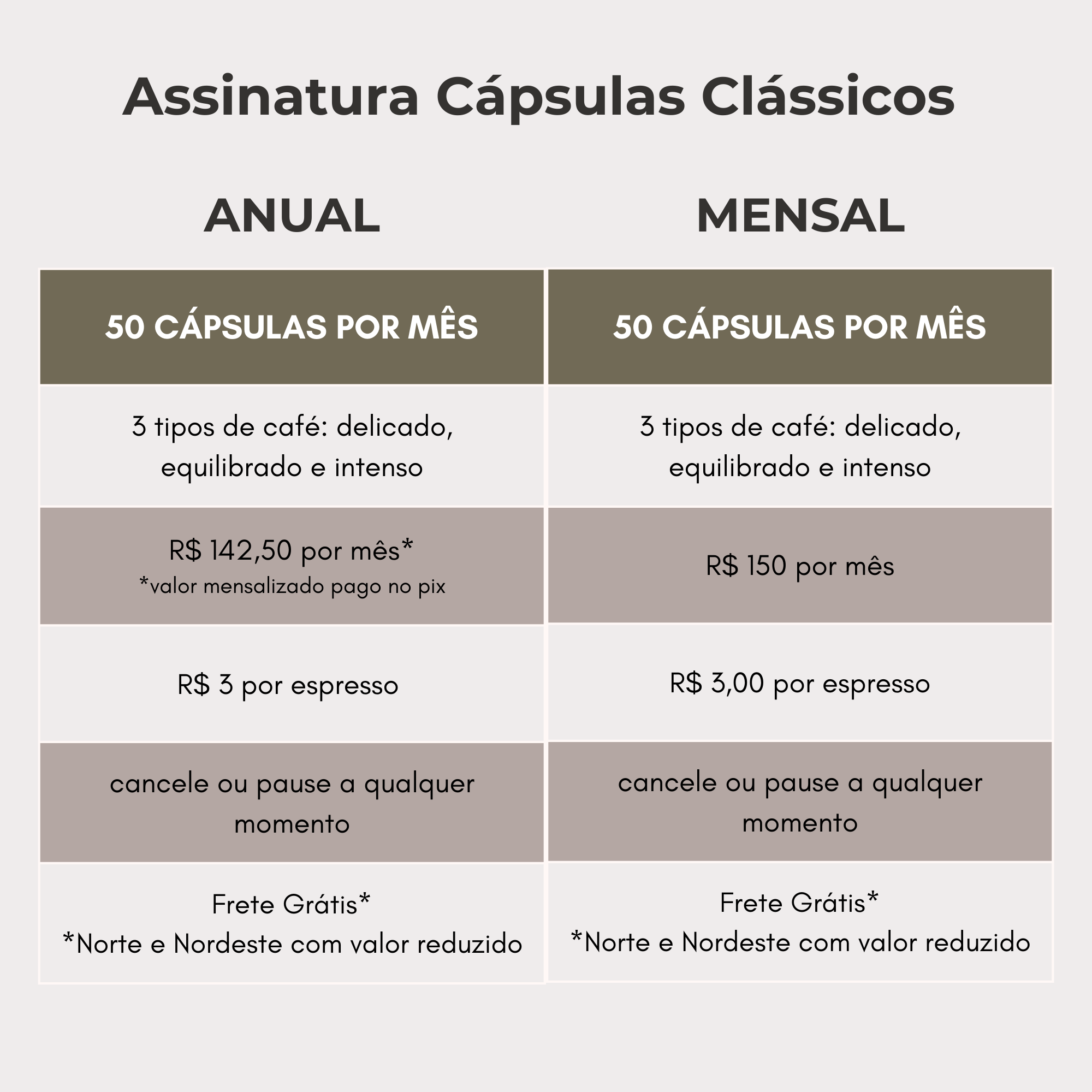 ☕ receba 50 cápsulas todo mês