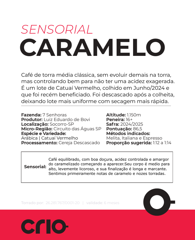 Café de torra média clássica, sem evoluir demais na torra, mas controlando bem para não ter uma acidez exagerada. É um lote de Catuaí Vermelho, colhido em Junho/2024 e que foi recém beneficiado. Foi descascado após a colheita, deixando lote mais uniforme com secagem mais rápida.