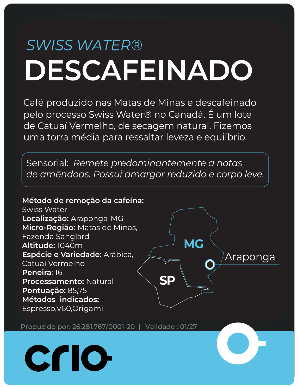 Amante de café mas não está podendo com cafeína?! Não se preocupe, esta cápsula foi desenvolvida para você! Descafeinado pelo método Swiss Water®, removendo sem adição quimica 99,9% da cafeína do café.