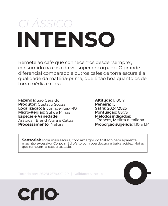 Remete ao café que conhecemos desde "sempre", consumido na casa da vó, super encorpado. O grande diferencial comparado a outros cafés de torra escura é a qualidade da matéria-prima, que é tão boa quanto os de torra média e clara.