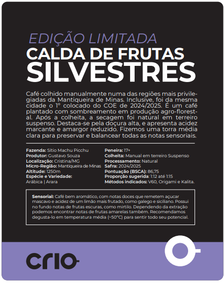 Café colhido manualmente numa das regiões mais privilegiadas da Mantiqueira de Minas. Inclusive, foi da mesma cidade o 1º colocado do COE de 2024/2025. É um café plantado com sombreamento em produção agro-florestal. Após a colheita, a secagem foi natural em terreiro suspenso. Destaca-se pela doçura alta, e apresenta acidez marcante e amargor reduzido. Fizemos uma torra média clara para preservar e balancear todas as notas sensoriais.
